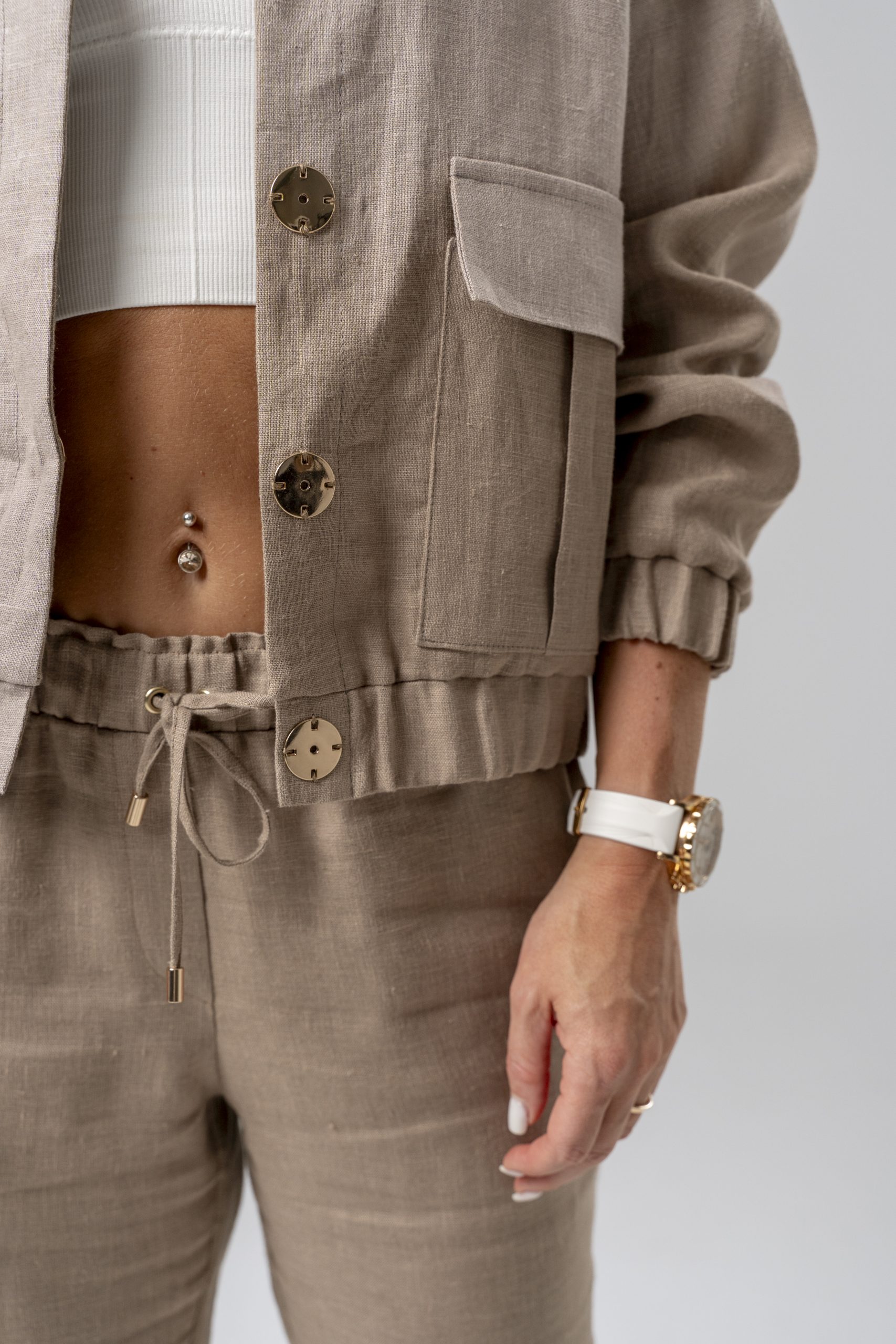Patogios ir lengvai derinamos lininės kelnės SIJA. Šios kelnės turi šonines kišenes, elastingą juosmenį su reguliuojamu raišteliu.