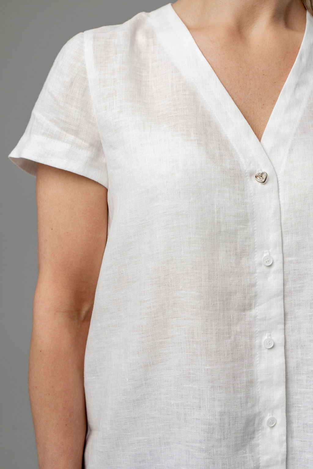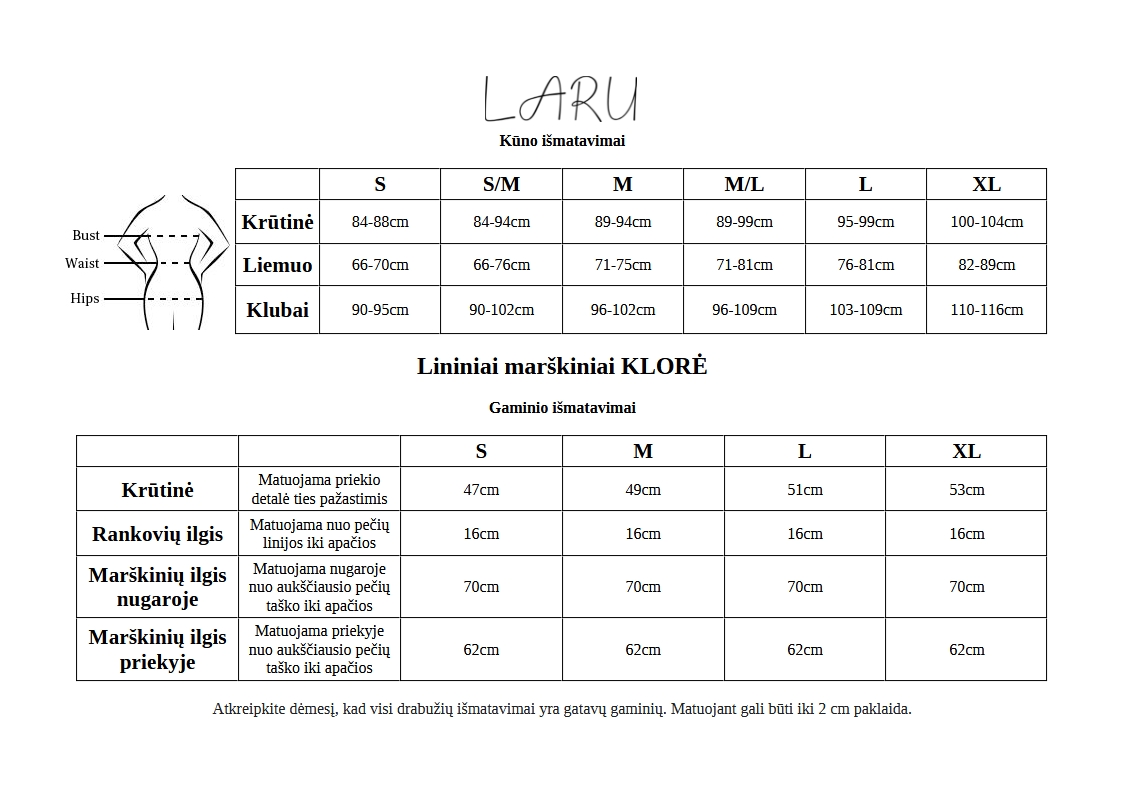 Marškiniai Klorė –  tiesaus silueto, su V formos iškirpte ir trumpomis rankovėmis kuria elegantišką, tačiau neįpareigojantį įvaizdį. Nugara kiek ilgesnė nei priekis. Viršutinė saga – nedidelė širdelė. Tai švelnus akcentas, kuris suteikia palaidinei žaismingumo ir individualumo.